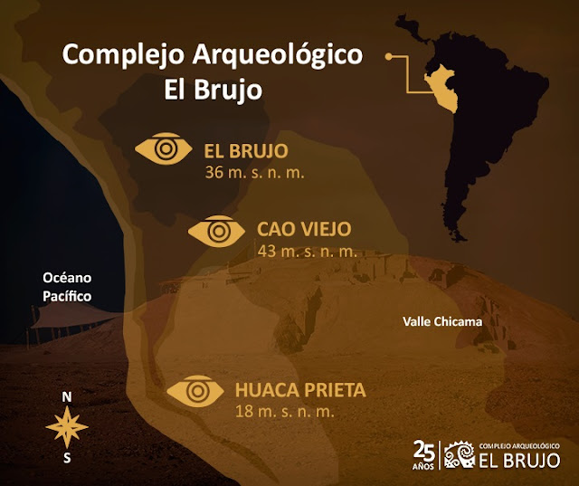 Se trata de uno de los complejos arqueológicos de mayor importancia en la costa norte del Perú. Fue construido en el periodo Precerámico, hace 5000 años. El brujo consta de 3 grandes edificaciones: la Huaca prieta, la Huaca Cortada y la Huaca de Cao Viejo, que nos ofrece unos magníficos frisos policromos en relieve, que son únicos entre los restos mochicas y murales con una amplia gama de colores y diseños. Cada una de estas pirámides llegan a medir hasta los 30 m de altura en 1.5 km de extensión.