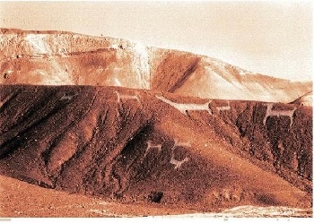 Asentamiento arqueológico que muestra figuras de auquénidos labrada en las colinas de la zona llamada Chen Chen.